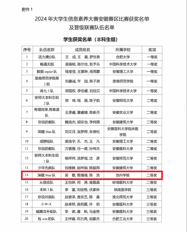 11月14日,2024年高校大学生信息素养大赛安徽赛区比赛在线上圆满落幕,必赢学子荣获安徽省二等奖,取得必赢在该赛事上的新突破。图书馆梁秀娟、程淑芳老师获优秀指导教师奖项。