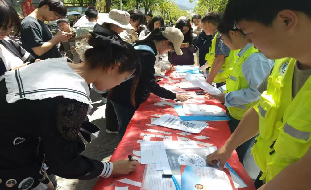 活动充分利用校园电子显示屏、学校官方微信公众号、校园广播等平台,全方位、多角度地推送国家安全日相关宣传内容。活动现场摆放着涵盖政治安全、文化安全、网络安全、生态安全等多个国家安全领域的知识手册,以图文并茂的形式向学生普及国家安全的重要意义与相关法律法规。工作人员还热情地向学生发放精心印制的宣传手册,手册中不仅有国家安全法、反间谍法等法律条文的详细解读,还穿插了大量贴近校园生活的实际案例,生动诠释了日常生活中可能涉及国家安全的行为以及如何正确应对。为了进一步提高活动的参与度与影响力,还特别设计了国家安全知识有奖问答环节。众多学生踊跃参与,围绕国家安全相关问题积极思考、热烈讨论,现场气氛十分活跃。