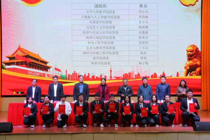 党委办公室、党委学工部、校团委和二级学院党委负责人,二级学院团委负责人、受表彰代表以及二级学院团员青年代表参加议。