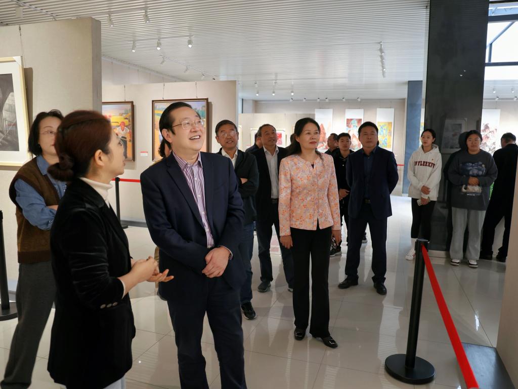 在展览现场,校领导认真观看展览,听取了策划布展、参展作品、艺术特色等情况的介绍后,对此次艺术与教育学院主题美术作品展给予充分肯定,认为此次展览作品主题鲜明、内容丰富。