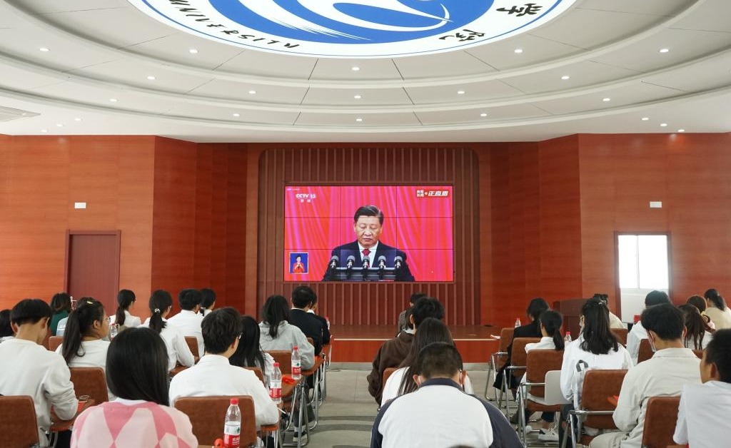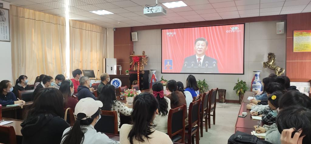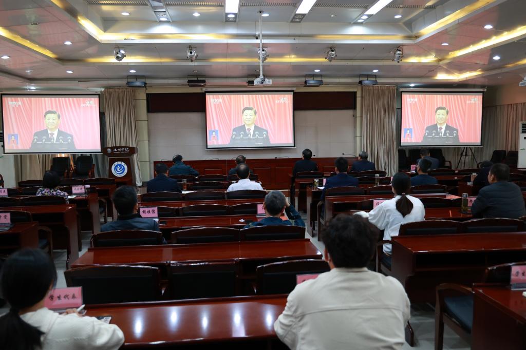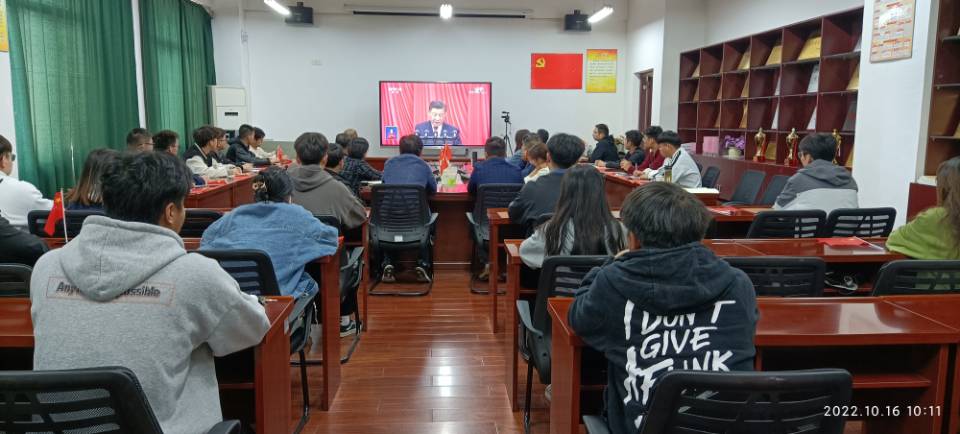 10月16日上午10时,中国共产党第二十次全国代表大会在北京人民大会堂开幕。习近平总书记代表第十九届中央委员会向大会作报告。按照学校党委部署,全校党员和广大师生通过各种形式收听收看开幕会盛况,认真聆听习近平总书记的报告。在校的校领导孙晓峰、崔国发、汪海,校党委理论学习中心组全体成员、职能部门主要负责人、机关党委所属党支部书记以及学生代表在办公南二楼会议室主会场集中观看开幕会直播。各二级学院党委、校团委分别设立分会场,组织师生代表和团学青年集中收听收看开幕会实况。广大师生员工纷纷通过网站直播、手机客户端等多种形式认真观看开幕会。