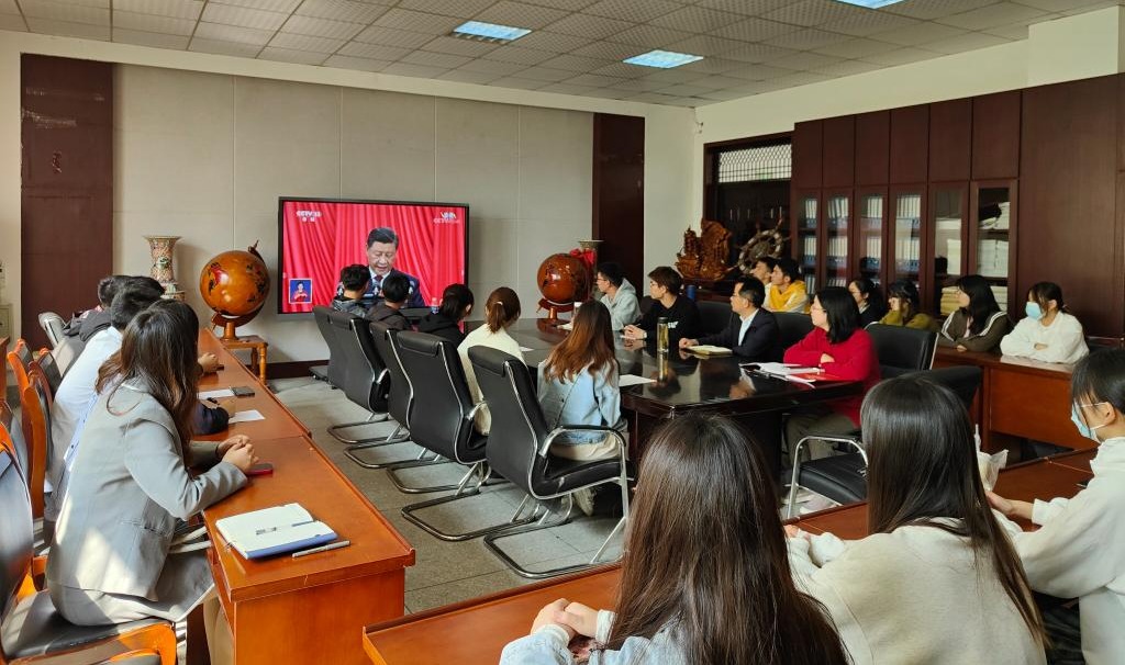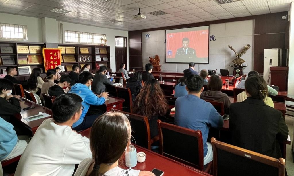 校党委书记孙晓峰表示,党的二十大是在迈上全面建设社会主义现代化国家新征程、向第二个百年奋斗目标进军的关键时刻召开的一次十分重要的大会。习近平总书记的报告,站在民族复兴和百年变局的制高点,科学谋划了未来5年乃至更长时期党和国家事业发展的目标任务和大政方针,提出了一系列新思路、新战略、新举措,是指导我们全面建设社会主义现代化国家、向第二个百年奋斗目标进军的纲领性文献。我们要深刻领会其中的核心要义与精神实质,切实增强学习宣传与贯彻落实的政治自觉、思想自觉、行动自觉,紧扣立德树人根本任务,纵深推进全面从严治党,不断提高人才培养质量,以最大的积极性、主动性和创造性肩负起为党育人、为国育才的光荣使命,为国家、为民族、为人民培养更多可堪大任的时代新人。