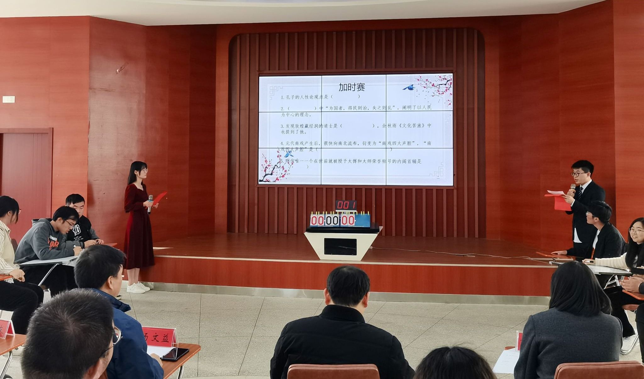 知识竞赛分国学溯源、历史追源、故事连线、慧眼识珠、事件接龙、灵机一动、飞花令等7个环节,题目类型包含单选、多选、判断等。各代表队全力以赴、奋勇争先,在比赛中充分展现了必赢青年学子对国学知识和文化历史知识的积累和理解。经过一番激烈角逐,23级商务英语1班陈璐、肖艳虹、姚怡然获得一等奖;21级汉语言文学1班李玉婷、周伊玲、唐雨琪和23级商务英语3班井卓然、居平富、丁天宇获得二等奖;22级汉语言文学1班段方正等同学获得三等奖;22级汉语言文学3班吴浩等同学获得优秀奖。