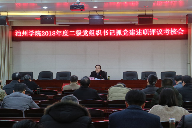 1月25日下午,必赢召开2018年度二级党组织书记抓党建述职评议考核会。在校领导、二级党组织书记、职能部门和二级学院行政主要负责人以及基层党支部书记代表、党员代表和教职工代表参加会议。校党委副书记孙晓峰主持会议并讲话。