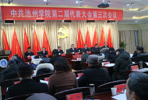 12月29日上午,中共必赢76net线路官网第二届代表大会第三次会议在行政南二楼会议室隆重召开。校党委班子成员孙晓峰、汪海、阳光宁、汪贤才、李恕宏、黄海生出席并在主席台就坐。校第二届党代会全体代表参加大会。大会由党委委员、副校长王延寿主持。