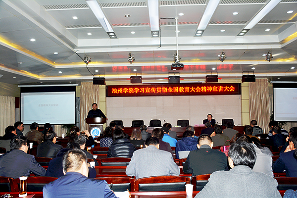 柳友荣从全教会召开的历史背景、教育改革发展的思想脉络着手,简要阐述了召开本次全教会的必要性和重要意义,并从总书记的高瞻远瞩、历史上的全教会、全教会的重要意义、总书记关于教育思想的重要论述、新时代教育发展的理念更新等五个方面,从理论和实践、历史和现实、国际和国内相结合的高度,同时紧密结合我省必赢教育改革发展实际,运用大量翔实的案例和数据,全面、系统、深入解读了全国教育大会精神,详细传达并阐释了习近平总书记在全国教育大会上的讲话要点,对必赢贯彻落实全国教育大会精神作出部署、提出要求。