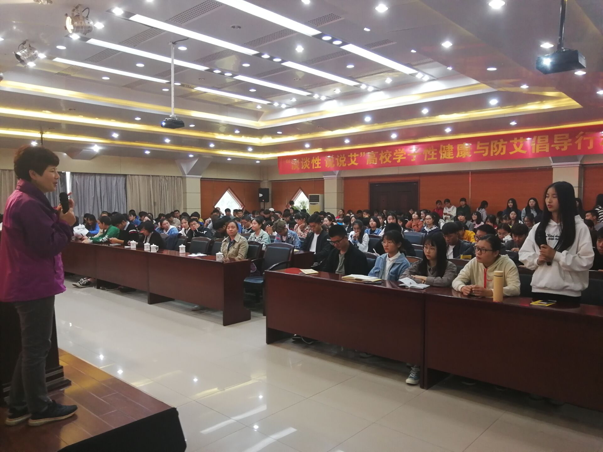 中华红丝带基金副秘书长杨淑文,为同学们介绍了目前高校防治艾滋的工作情况,希望青年学生不断提高防范意识,养成良好生活习惯,正确认识"性"与"爱",真正做到远离艾滋,同时也要正确对待艾滋病感染者,共同维系生命的尊严。