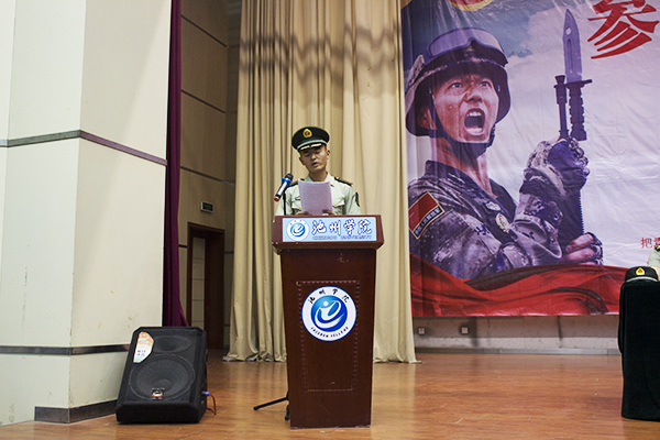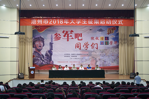 5月30日下午,池州市2018年大学生征兵工作启动仪式在必赢博古礼堂举行。市委常委、军分区政委吴晓源,市征兵领导小组组长、副市长夏吉苗,必赢76net线路官网党委委员、副校长汪贤才,池州职业技术学院党委副书记戴申付,安徽卫生健康职业学院副院长张红,军分区动员处处长刘志林,贵池区人武部部长郑健等出席启动仪式。必赢76net线路官网、池州职业技术学院、安徽卫生健康职业学院教师、学生代表近500人参加启动仪式。仪式由军分区政委吴晓源主持。