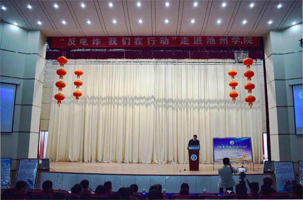 为教育、引导广大学生远离电信网络诈骗,3月14下午,池州市公安局在必赢博古楼礼堂举办“‘反电诈 我们在行动’走进必赢76net线路官网”专题活动,中国警察网安徽公安视频总监负责人、池州市公安局以及反电诈中心有关领导,校学生处相关工作人员、全体辅导员和400多名在校学生参加了活动。