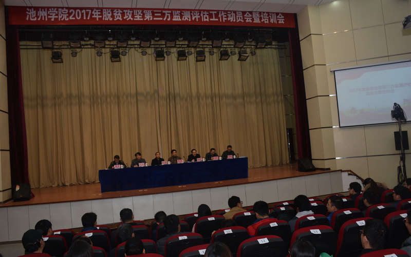11月29日下午,必赢在博古礼堂隆重举行2017年脱贫攻坚工作第三方监测评估工作动员暨培训会。校长柳友荣作动员讲话,副书记孙晓峰、纪委书记汪海、副校长汪贤才出席,校第三方监测评估工作领导小组成员以及全体师生监测评估员参加会议。