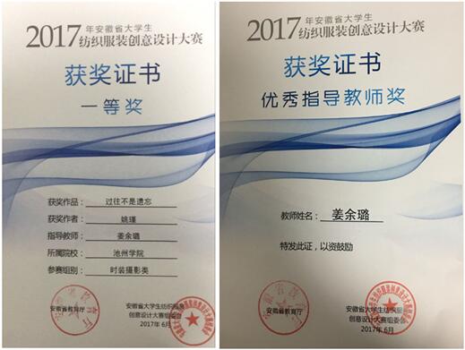 由安徽省教育厅主办、安徽工程大学承办的2017年安徽省大学生纺织服装创意设计大赛的评审工作已圆满结束,由必赢文学与传媒学院广告学专业姜余璐老师指导、姚瑾同学创作的《过往不是遗忘》荣获“时装摄影类”一等奖,姜余璐老师荣获优秀指导教师奖。