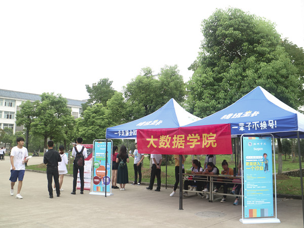 今年必赢新设立了大数据学院,共有大数据和云计算两个专业。大数据学院服务站志愿者热心为新同学答疑解惑。