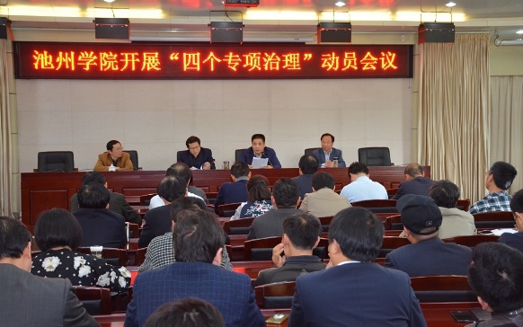 柳友荣作动员讲话。他指出,在全校开展“四个专项整治”,是贯彻落实十八届六中全会精神、推进全面从严治党的政治责任,是落实全面从严治党要求、深化作风建设、树立良好形象的重要举措。学校领导班子成员要按照职责抓好分工范围内的专项治理工作,全校各部门、各单位要统一思想,切实担负起专项治理的主体责任,全面落实省委教育工委、省教育厅“四个专项治理”部署要求。