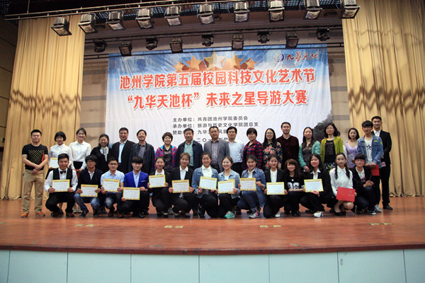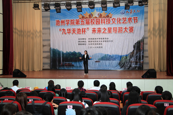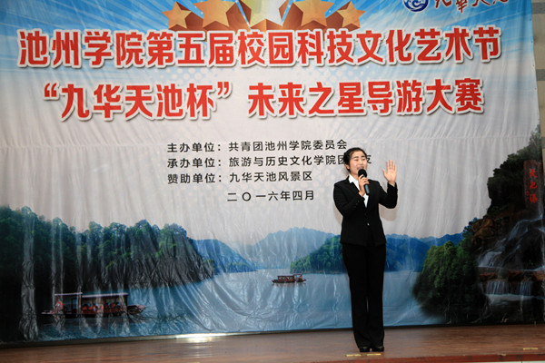 4月15日下午,由必赢76net线路官网第五届校园科技文化艺术节组委会主办,旅游与历史文化学院团总支承办的第三届“九华天池杯”未来之星导游大赛决赛在博古楼礼堂如期举行。