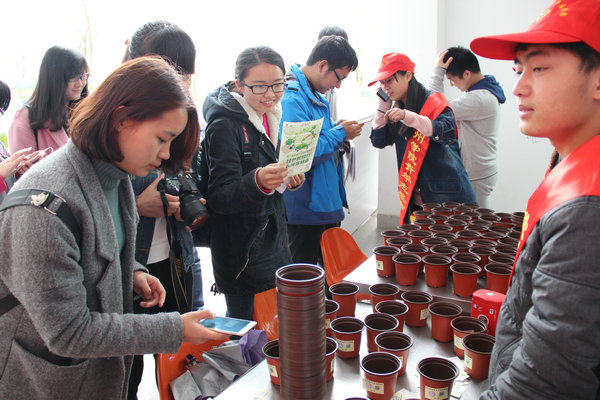 为绿化寝室环境,传播环保知识,培养学生的环保意识,3月30日—4月1日,校青年志愿者协会在第一食堂和第二食堂前组织开展了第六届全国大学生绿植领养活动。
