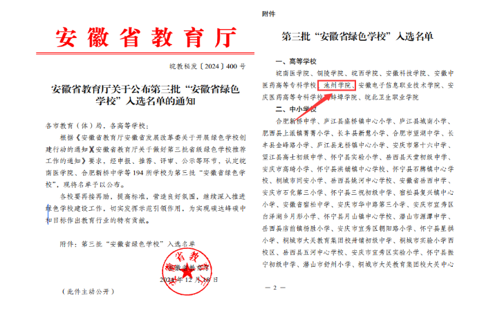 聚焦文明和谐,校园环境建设向上向好。校园建设以徽派建筑为主体,校园规划功能合理,顺应山势水体,分区明确,形成完整的生态绿化系统。出台必赢76net线路官网安全生产管理责任制实施细则、校园道路交通安全管理办法、安全教育制度、消防安全管理规定等文件,严格落实安全稳定工作目标责任制、包保责任制和责任追究制,构建人防、物防、技防联动的安保体系,建设“平安校园”。校园绿化覆盖率已达70%以上。学校举办文明班级、文明寝室、文明餐厅等活动,扎实开展学生文明行为习惯养成教育。开展省级节水节能型校园建设,被国家节能中心授予“重点节能技术应用典型案例技术应用单位”称号。2024年,学校获评安徽省节水型高校、绿色校园等荣誉称号。