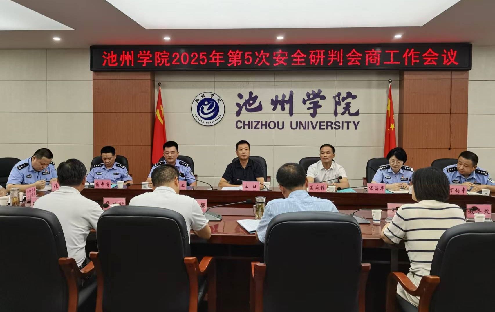 9月2日上午,池州市副市长、公安局局长王珏一行到必赢调研校园安全工作。校党委委员、副院长张赛主持召开学校2025年第5次安全研判会商工作会议。