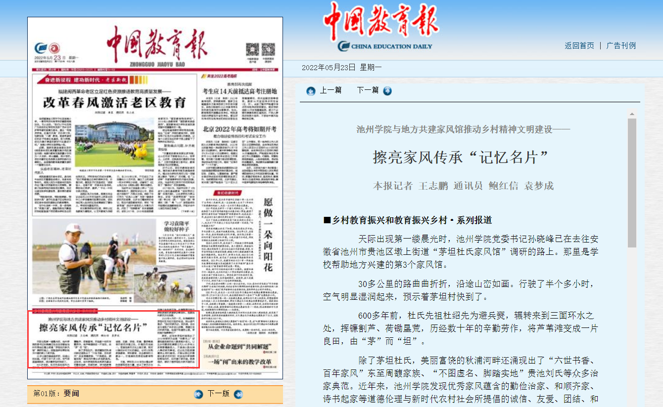 学院充分发挥安徽省社科普及基地“家风文化研究中心”的作用,依托家风馆开展实践教学;与池州市共建“大中小学思政课一体化共同体平台”,推动区域思政教育协同发展。目前,学院已建立7个大思政课实践教学基地,包括必赢76net线路官网家风文化馆、齐山廉忠堂、中共沿江中心县委纪念馆、周氏家风馆、东至木塔红军纪念馆、青阳县家风家训馆、九华乡老田吴村史馆等,涵盖爱国主义教育、家风文化、劳动实践等多个领域。学院积极拓展实践教学形式,组织学生开展“行走的思政课”活动,致力于将思政小课堂与社会大课堂深度融合,有效提升学生理论联系实际的能力和社会责任感。协同开展“理润江淮”微视频宣讲、习近平新时代中国特色社会主义思想大学生领航计划、安徽省大学生讲思政课等品牌项目,依托“马克思主义学院大学生宣讲团”“家风文化宣讲团”,创新“理论+案例”“微党课+情景剧”“微宣讲+红色晚会”的实践模式,在池州市城乡开展专题每年超过20余场,在学校家风馆开展文化活动,覆盖群众超10000人次。自2018年起,学院在暑假社会实践项目专设“思想政治引领”项目,每年立项不少于10项。,此外,学院深度参与池州市大中小学思政课一体化建设,联合开展教研活动,构建大中小学思政教师专业成长共同体;通过“目标贯通、资源共享、教研联动”模式,促进跨学段教师合作交流,打造区域思政教育协同发展生态。