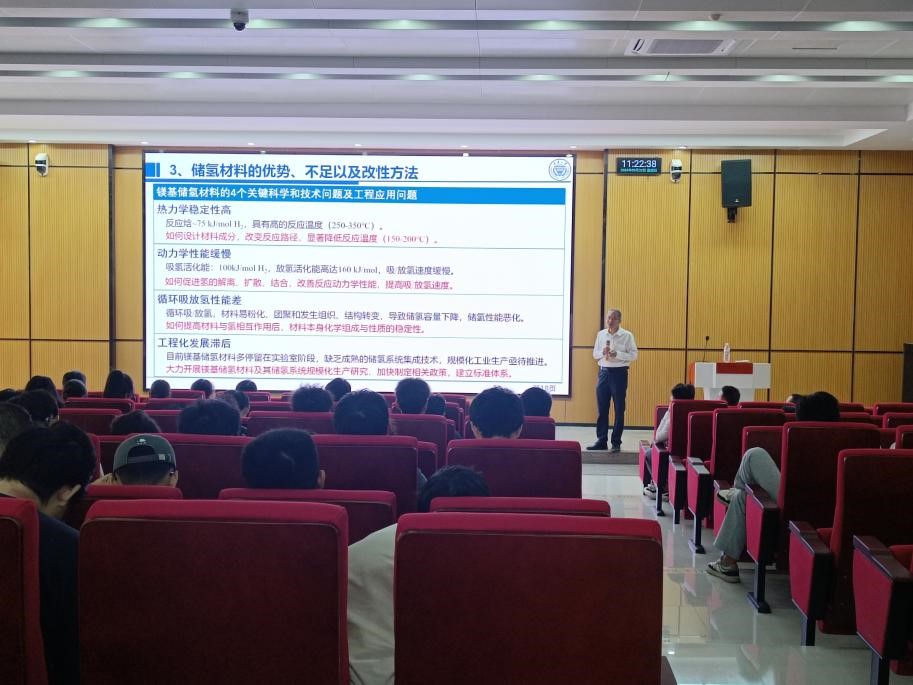 陈玉安教授从国家政策和行业需求讲述了氢能源发展的重要性,分析了固态储氢材料以及镁基储氢材料的特性及存在的问题,提出通过合金化、掺杂、纳米化和复合化等策略来提升镁基储氢材料性能,最后对镁基储氢材料的应用前景进行了展望。陈玉安教授表示,每一个高校科研工作者,都要将科学研究工作与服务国家发展、建设科技强国相结合,不断提高科研水平和创新能力,为实现高水平科技自立自强、抢占科技竞争制高点做出不懈努力。