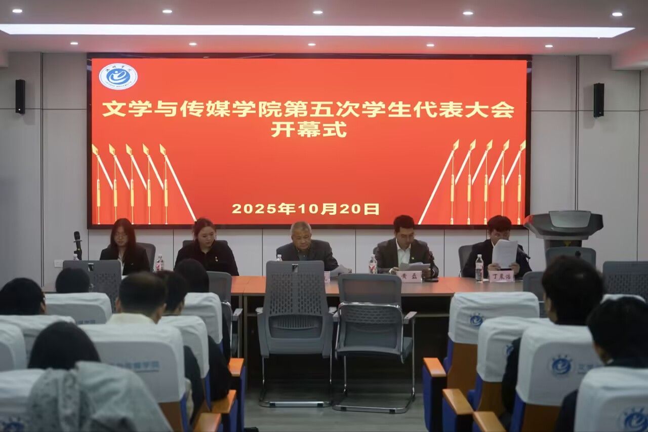 10月20日下午,文学与传媒学院第五次学生代表大会在博物南三楼视听实训室举行。文学与传媒学院党委书记许思友、团委书记戴濛濛、团委工作人员黄磊、学生会主席团代表何馨蕊及学生代表参加会议。