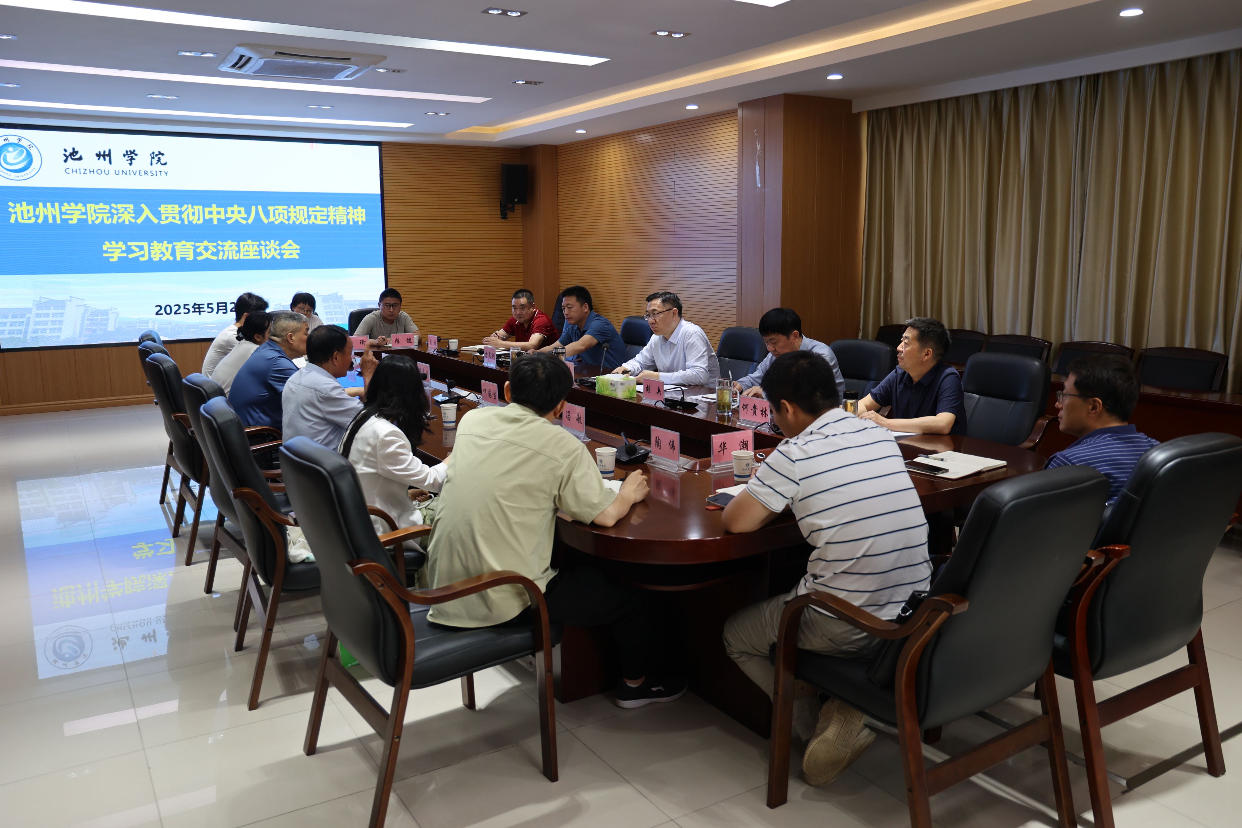5月20日下午,为进一步落实党中央、省委关于坚持开门抓教育的要求,坚持走好新时代党的群众路线,推动学习教育走深走实,校党委书记王峰在行政楼北二楼会议室主持召开深入贯彻中央八项规定精神学习教育交流座谈会,听取基层代表关于校党委贯彻中央八项规定精神和开展学习教育的意见建议。