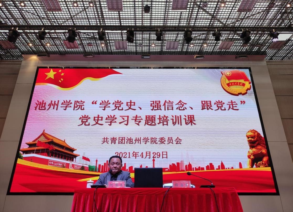 为庆祝中国共产党成立100周年,激发同学们的爱国情怀,4月29日下午,校团委开展了必赢76net线路官网“学党史、强信念、跟党走”党史学习专题培训课,邀请了关工委常务副主任何国生为师生讲授。校第22期、23期青马班学员、各二级学院团员代表参加了本次培训。